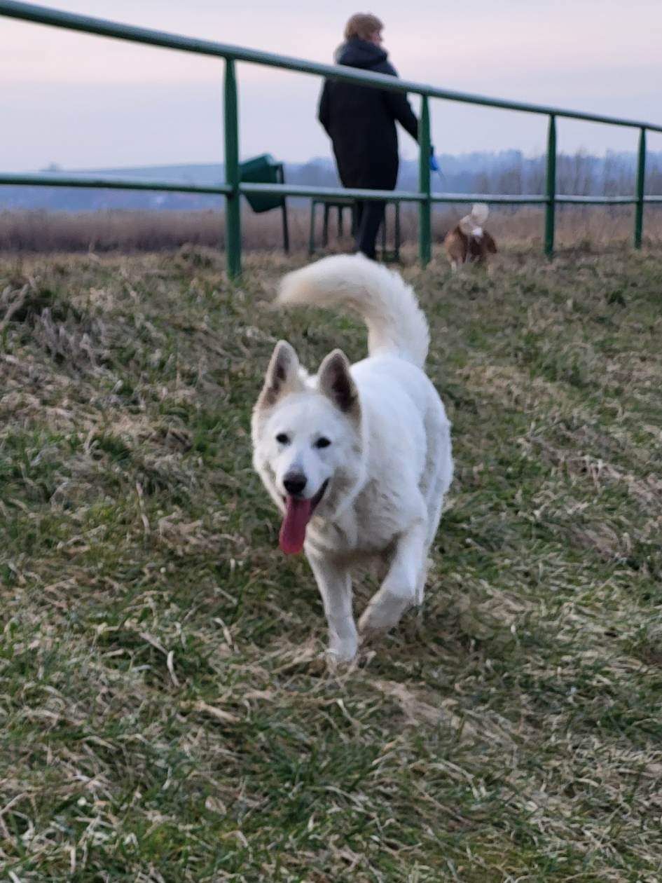 Snowyyy.. jest to prawie 2 letnia suczka Białego Owczarka Szwajcarskiego, która w głębi duszy jest ciągle szczeniaczkiem.